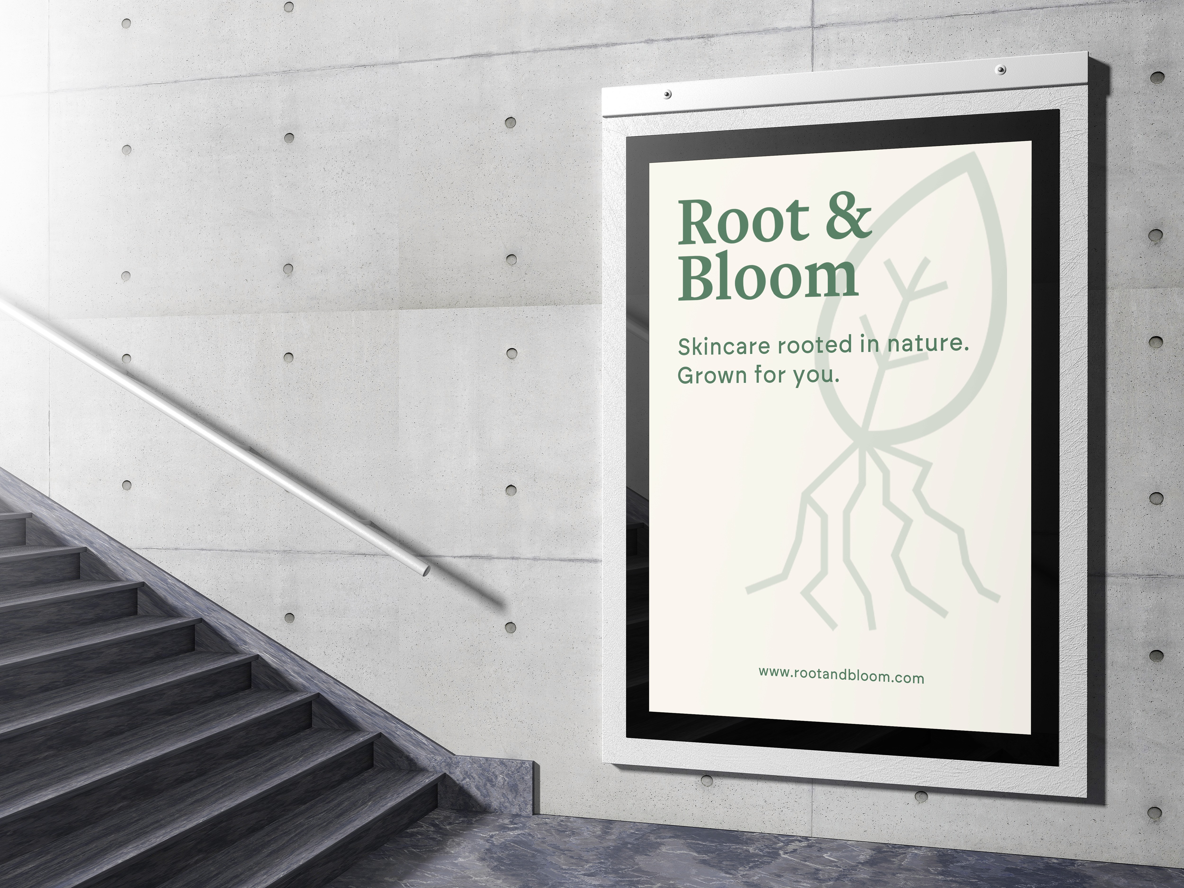 Root & Bloom was conceived to fill this gap – a fictional but fully realized skincare line demonstrating how strategic branding can help ethical startups: